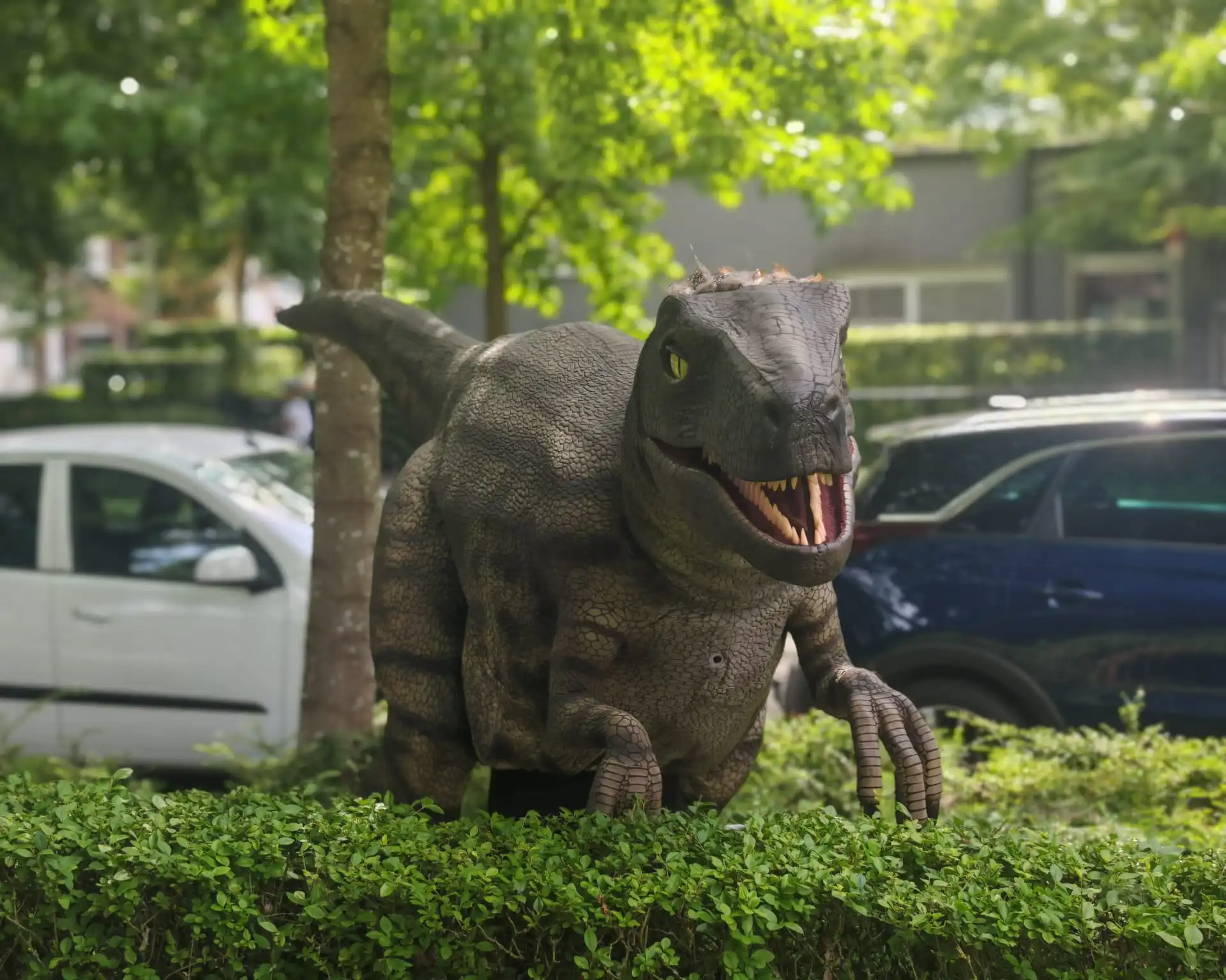 Een semi-automatische Velociraptor die je recht in de ogen kijkt, gromt en beweegt als wezens van miljoenen jaren geleden.
